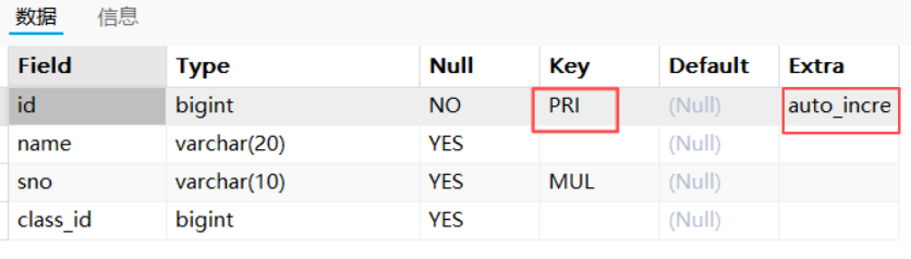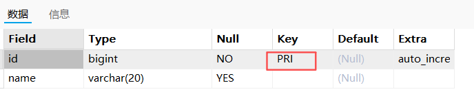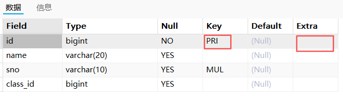 表结构显示此时的id列不再是自增列。可以删除主键了: