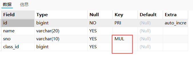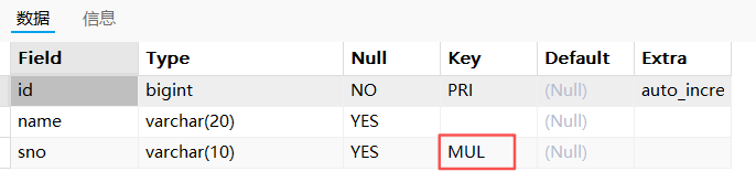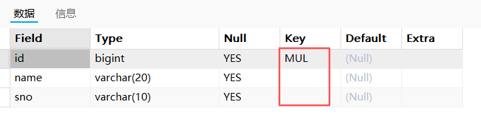 MUL 的全称是Multiple(意为 "可重复的"),用来表示该列对应的索引是非唯一索引。