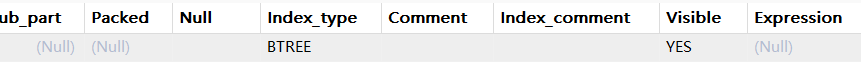 | Expression | 表示是否是 "表达式索引": NULL = 不是(你的截图是普通列索引); 若为表达式(如 index((a+b))),会显示表达式内容 |