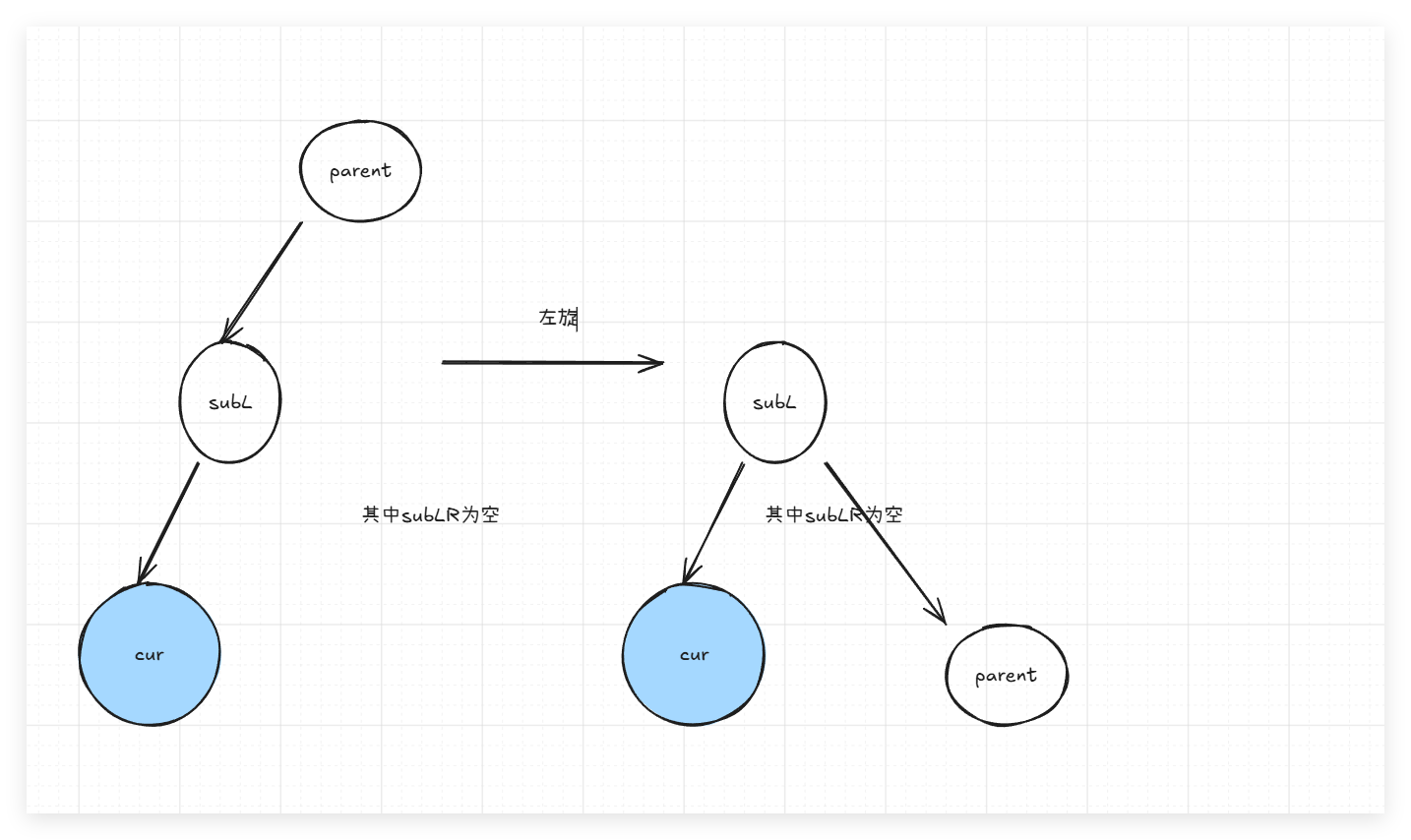 - 如果cur(要插入的节点)在parent的做左边,那么parent的