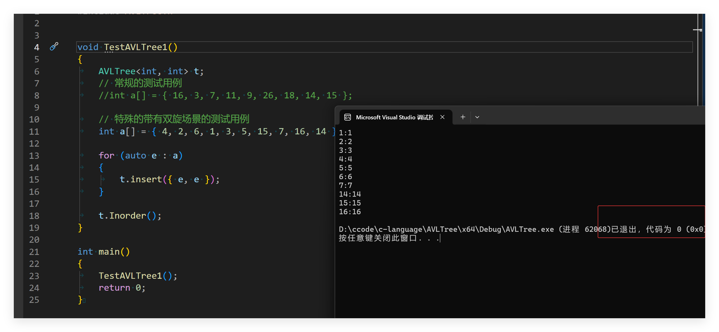 我们完成大致AVL的树构建,那么我们便可以进行尝试测试: