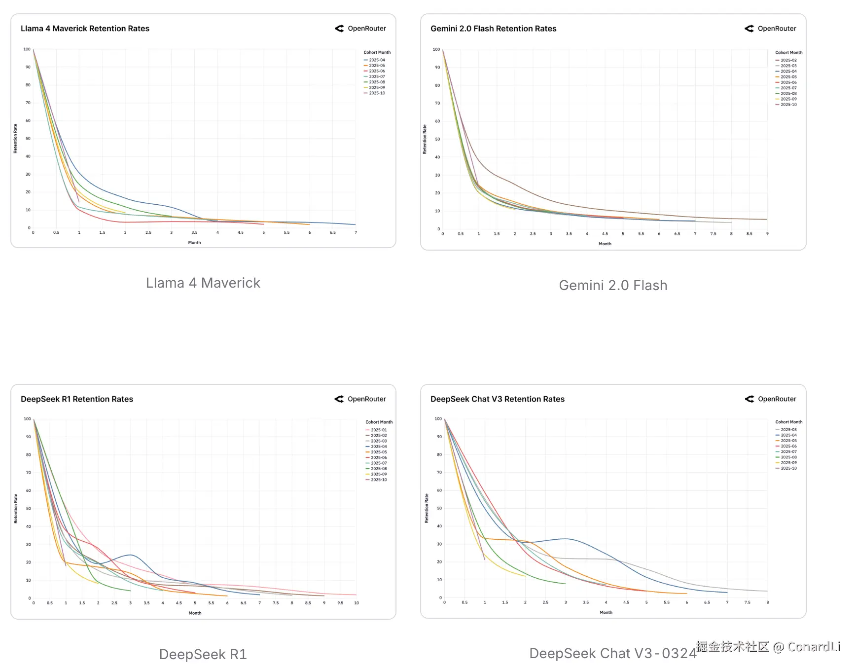 只有解决痛点,才能"锁死"用户 数据揭示了一个残酷的规律:用户不仅仅是来"玩玩"的。只有当一个新模型完美解决了用户之前解决不了的具体难题(无论是技术突破还是成本极低),用户才会真正长期留下来。一旦业务跑通,用户为了稳定,基本不会再换模型。