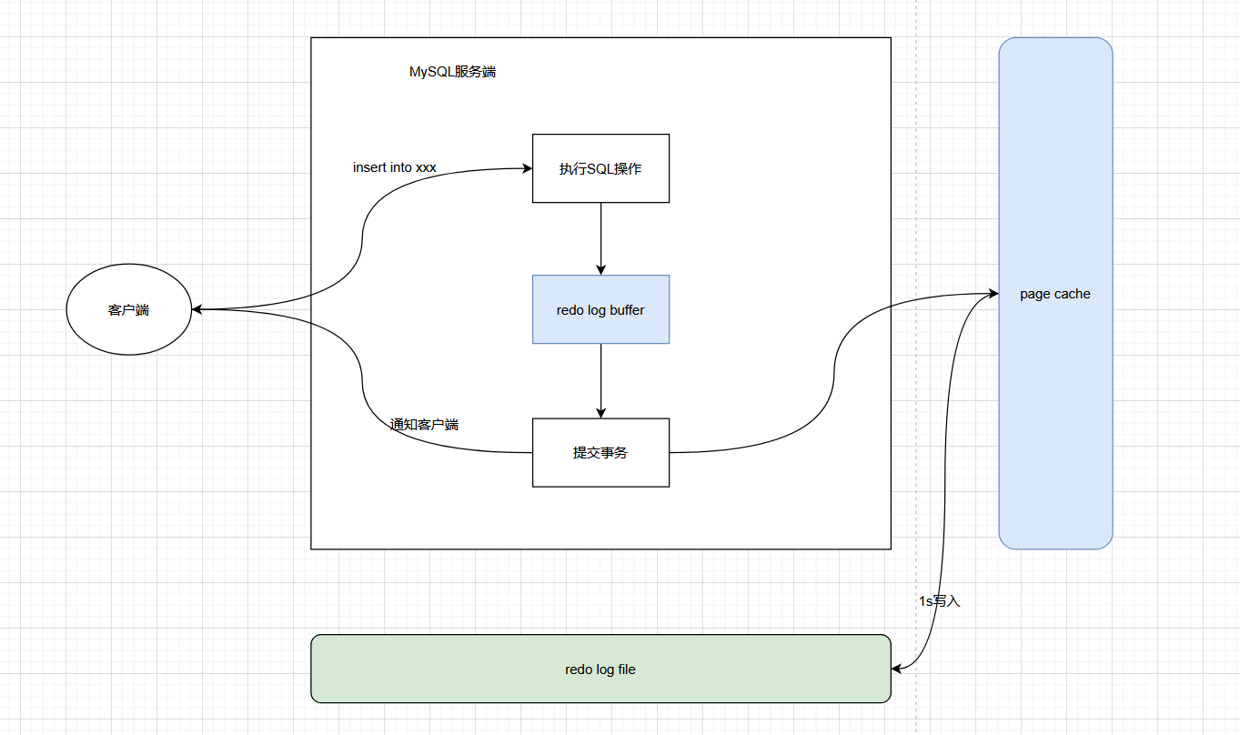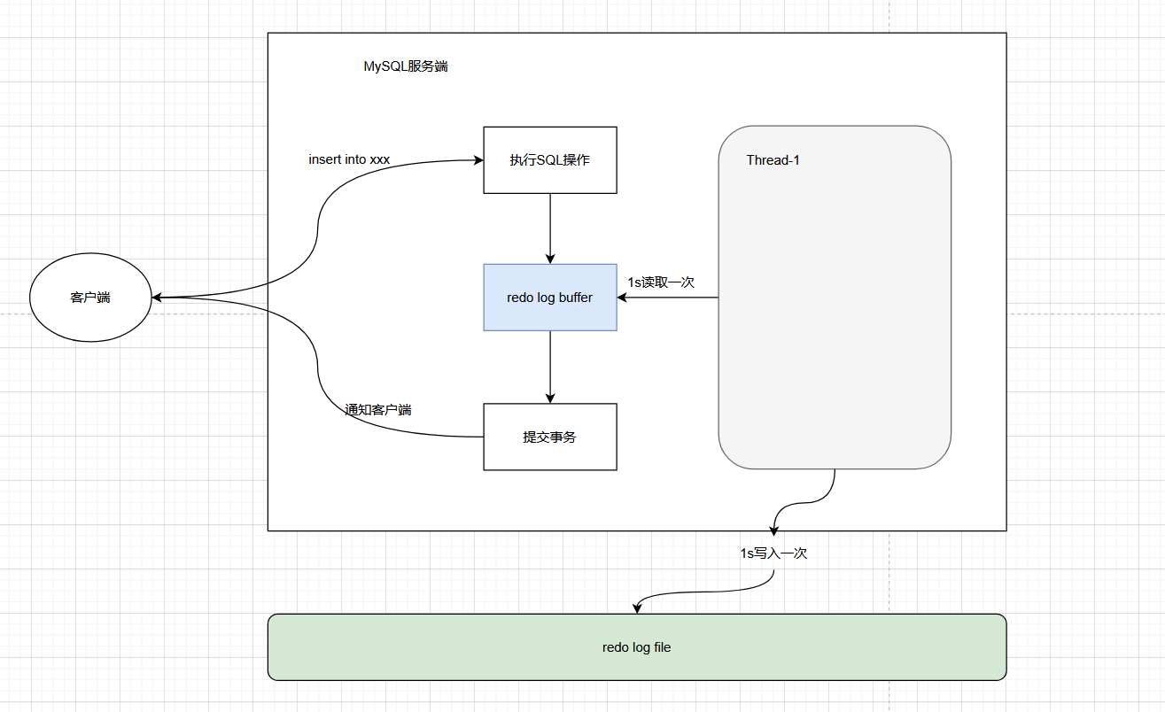 redo log file,而是由后台线程每隔1s写入一次(每秒同步),这样做极端情况下会丢失1s的数据。