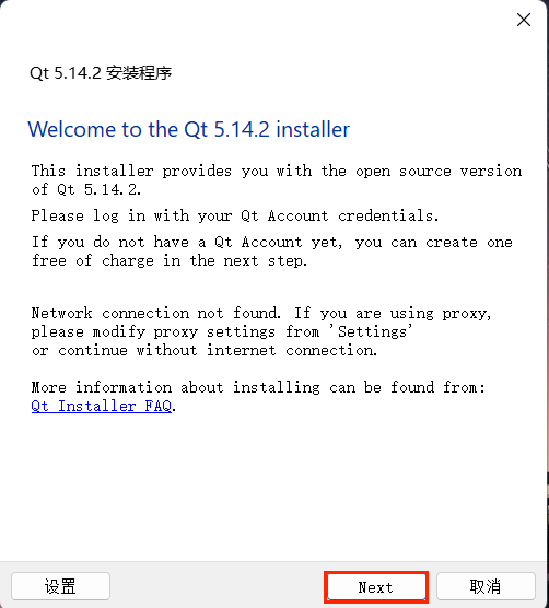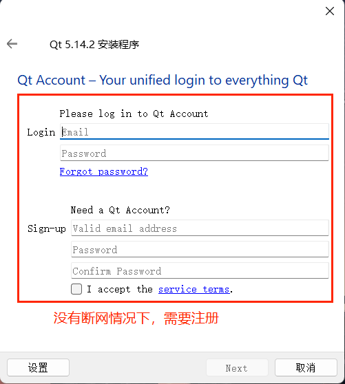 1、找到下载的⽂件并双击;注意:在双击之前先断⽹,否则需要我们注册 Qt 账号登录后才能进⼊下 ⼀步安装;