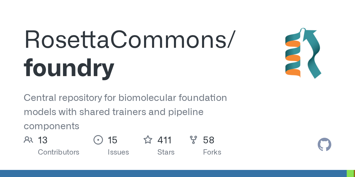 - 💡 推荐语: RosettaCommons推出foundry项目,作为生物分子基础模型的中央仓库,提供共享的训练器和流水线组件,旨在加速AI驱动的蛋白质等生物大分子的研究与开发。