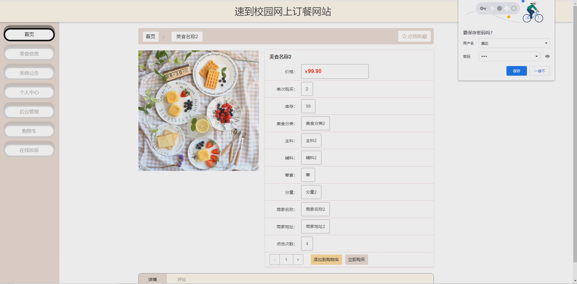 一套基于SSM框架的"速到校园网上订餐网站",实现用户管理、美食分类、商家管理、美食信息展示及基础订餐功能,支持学生、商家、管理员三类角色使用。
