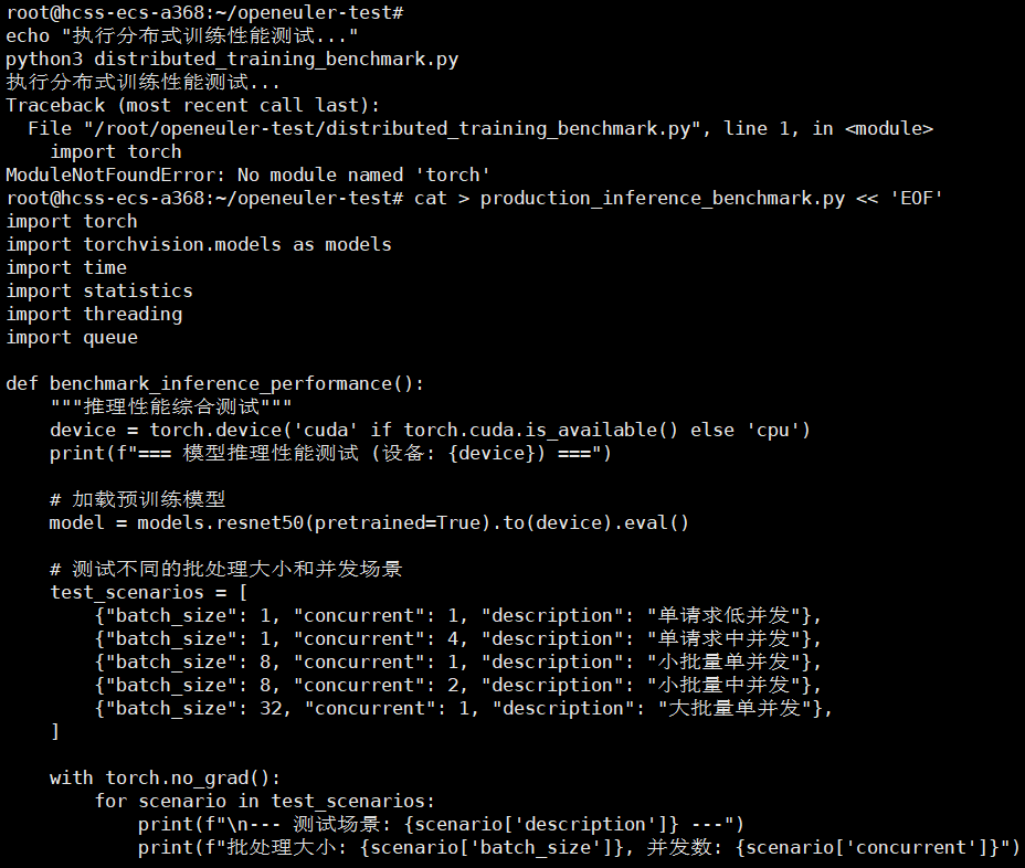 - 高效的推理服务:在生产级推理测试中,openEuler展现了低延迟、高吞吐的服务能力,能够满足实时AI应用的需求。