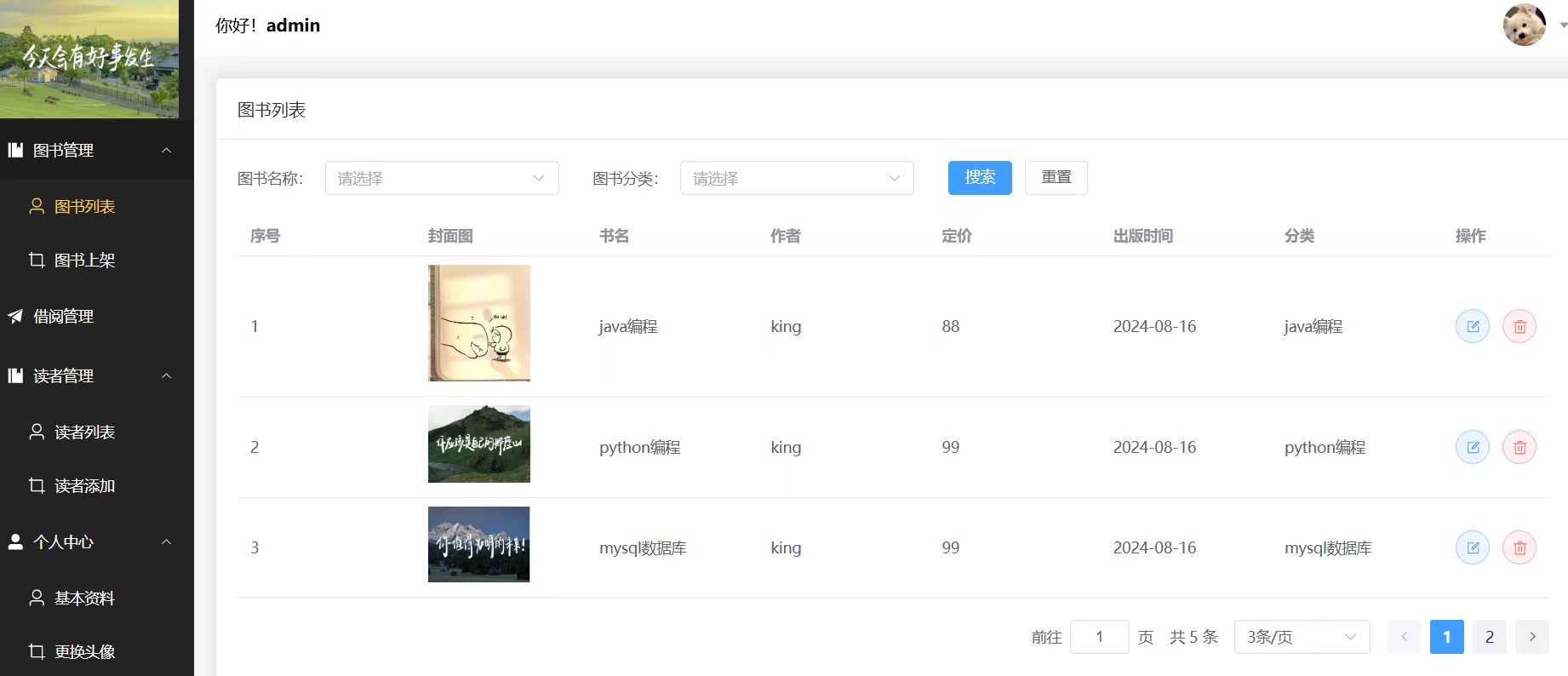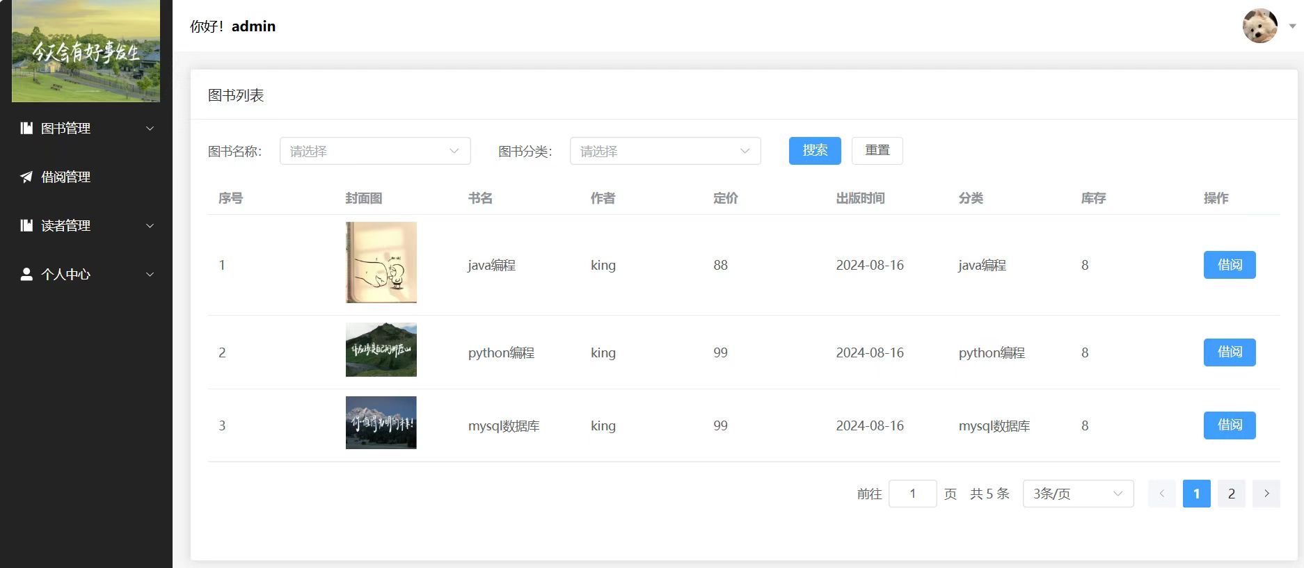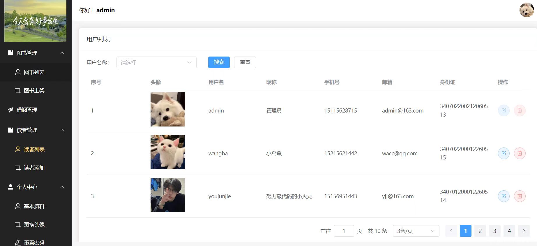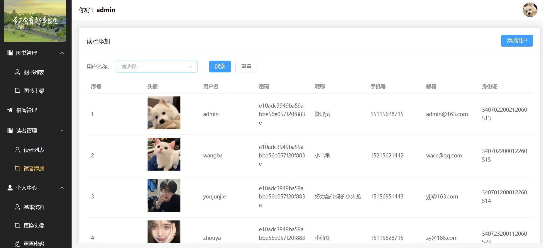 图书列表展示,借阅功能,读者管理,个人信息的管理,退出登录