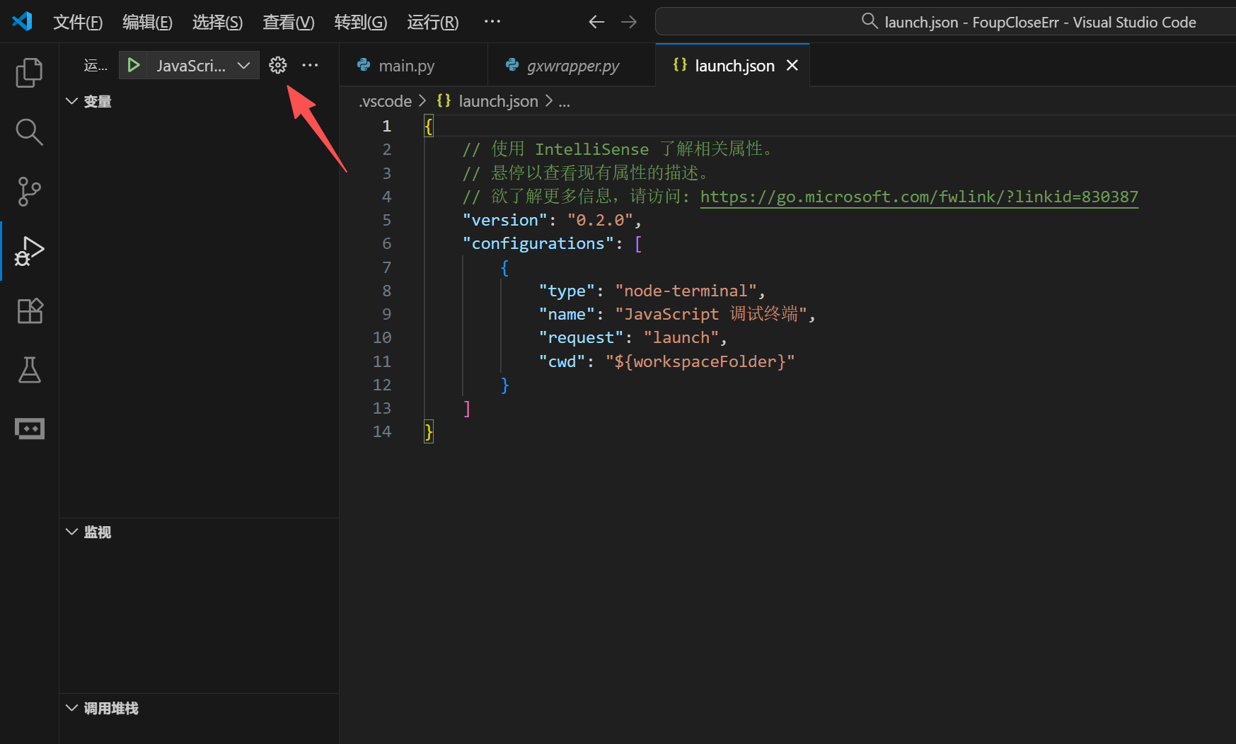 launch.json,直接点击面板右上角的「齿轮图标」打开编辑即可。