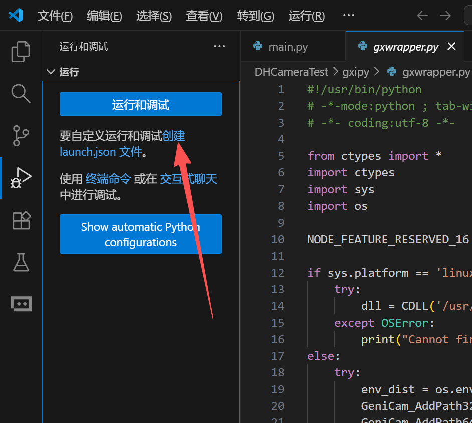 Ctrl+Shift+D/Cmd+Shift+D); - 若从未配置过调试,面板会显示「创建launch.json文件」,点击它;