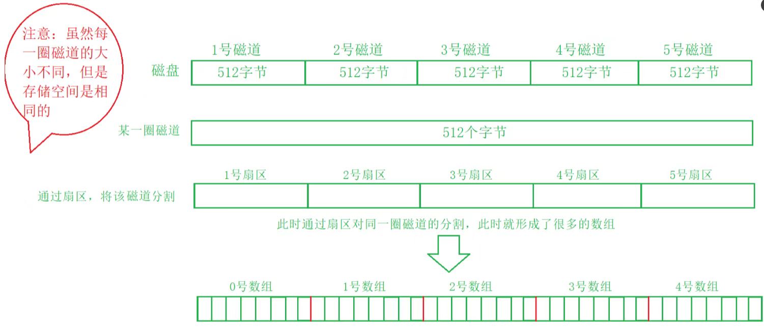 将磁道拉长,会得到一串线性空间(数组),其中的每个单位(扇区)为 512 字节(或者 4 kb)