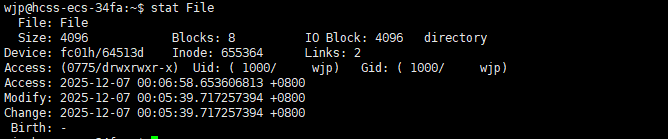 - 文件类型(是普通文件、目录还是设备文件等)