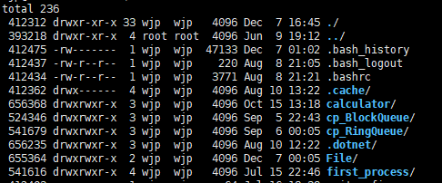 通过以下指令查看当前目录中文件的详细信息及 inode 值。