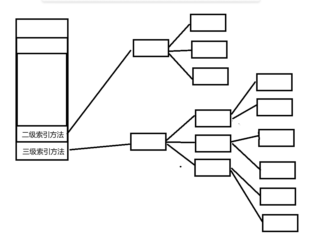 datablock数组里面存放的就是该文件使用的块下标,如果一个文件的内容非常大,占用的块的个数很多的话,最后的几个下标会采取二三级索引的方式,也就是最后的几个下标指的块的内容不是文件内容,而是其他块的编号,这样就可以指向更多块,存储更多的内容,像多叉树一样,最后叶子节点才存放文件内容,这样子空间就变大了好多。