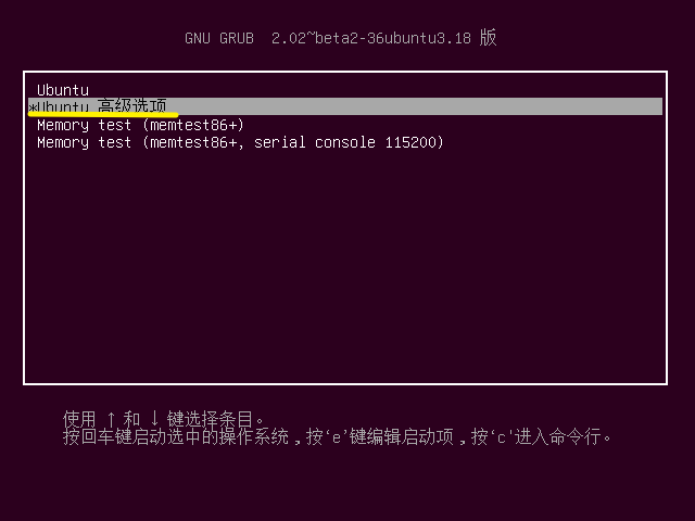 还是shift按钮就如GRUN界面,通过上下键选择第二个高级选项: