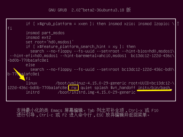 init=/bin/bash
