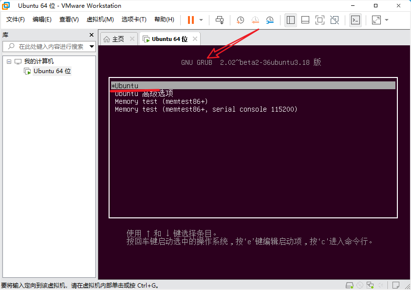 1、进入GRUB界面