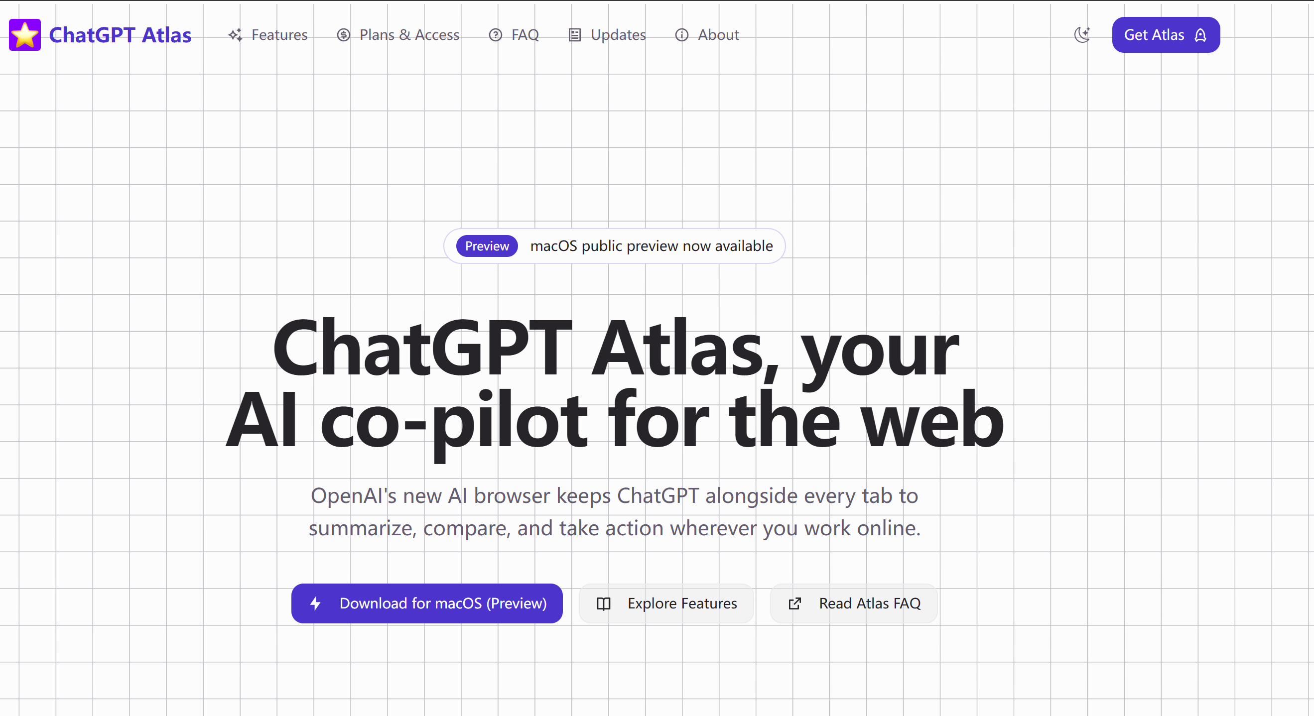 2025 年 10 月 21 日,OpenAI 正式发布了旗下首款 AI 原生浏览器 ChatGPT Atlas,这一产品的诞生标志着浏览器从 "信息渲染工具" 向 "智能协作助手" 的根本性转变。过去二十年间,浏览器作为互联网入口的核心地位从未动摇,但功能迭代始终停留在界面优化、性能提升等表层创新。而 Atlas 以 ChatGPT 为核心引擎,首次实现了 AI 与浏览行为的深度融合 ------ 它不再是被动的页面展示窗口,而是能够理解用户意图、串联上下文、自动执行任务的 "超级助手"。
