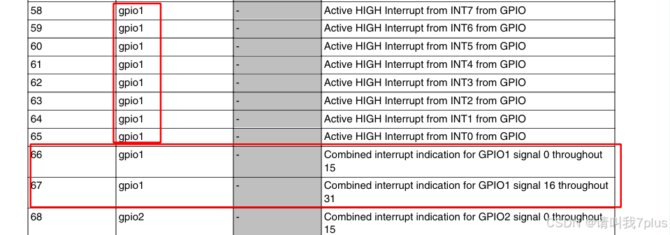 看下芯片手册,发现其实gpio1有两种中断形式,66、67为15个引脚共用一个中断号,只关注66、67吧。