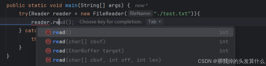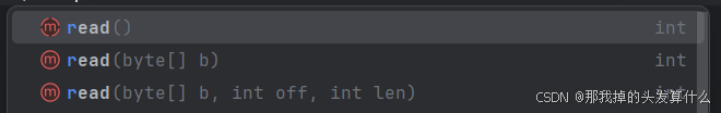 我们仔细看一下read方法,发现除了第一个方法返回值是int之外,其他的方法居然也都是int?正常来说,第一个方法读取一个字节并且返回,很合理,那其他的方法是何意味呢?这就用到了上面讲的输出型参数。此时read方法的逻辑就是:传入一个字节数组,调用read方法后,返回的值是数组中有效的位数(满了就返回数组长度)。这么做有什么好处呢?(我分一下段落来讲)