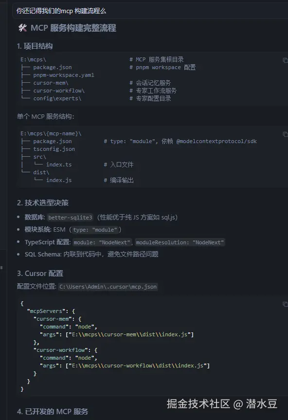 这里有关键的两步骤,一个是构建mcp的流程,一个是跨项目的记忆mcp