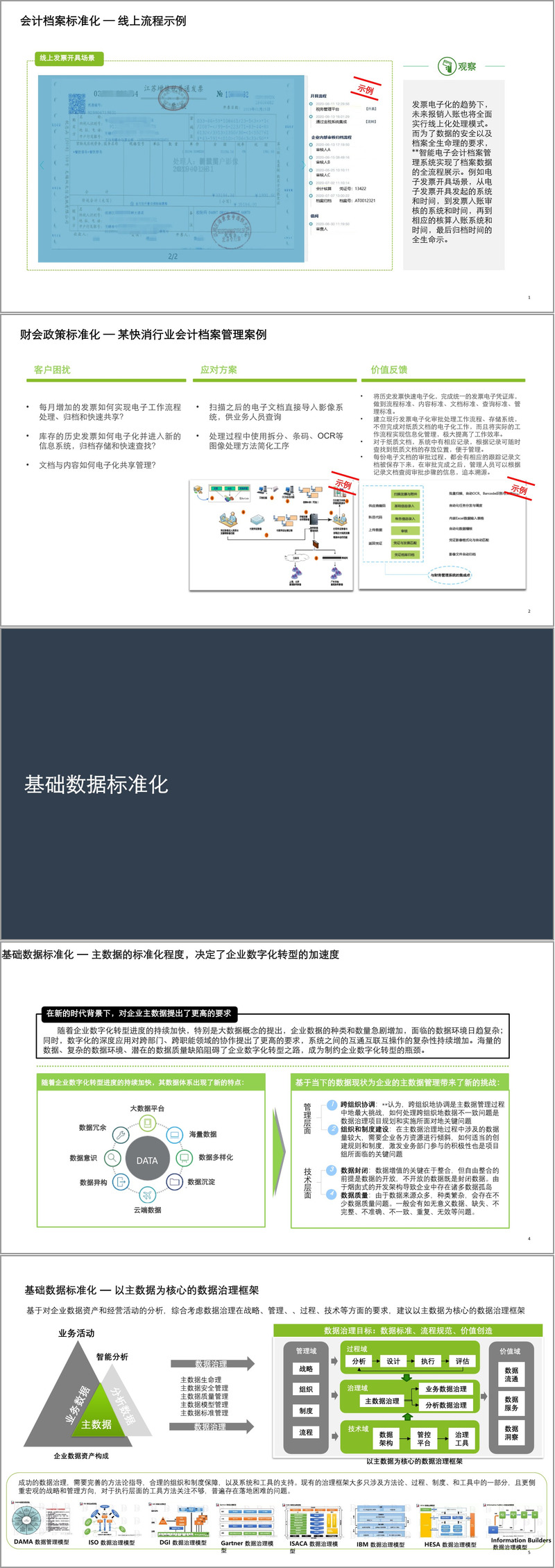 流程标准化部分强调建立规范、高效、可复用的业务流程体系。方案借鉴eTOM、APQC等国际标准,提出从现状调研、流程优化到推广实施的全套方法,并以合同管理、费用执行为例,展示如何通过自动化与规则优化提升流程效率。