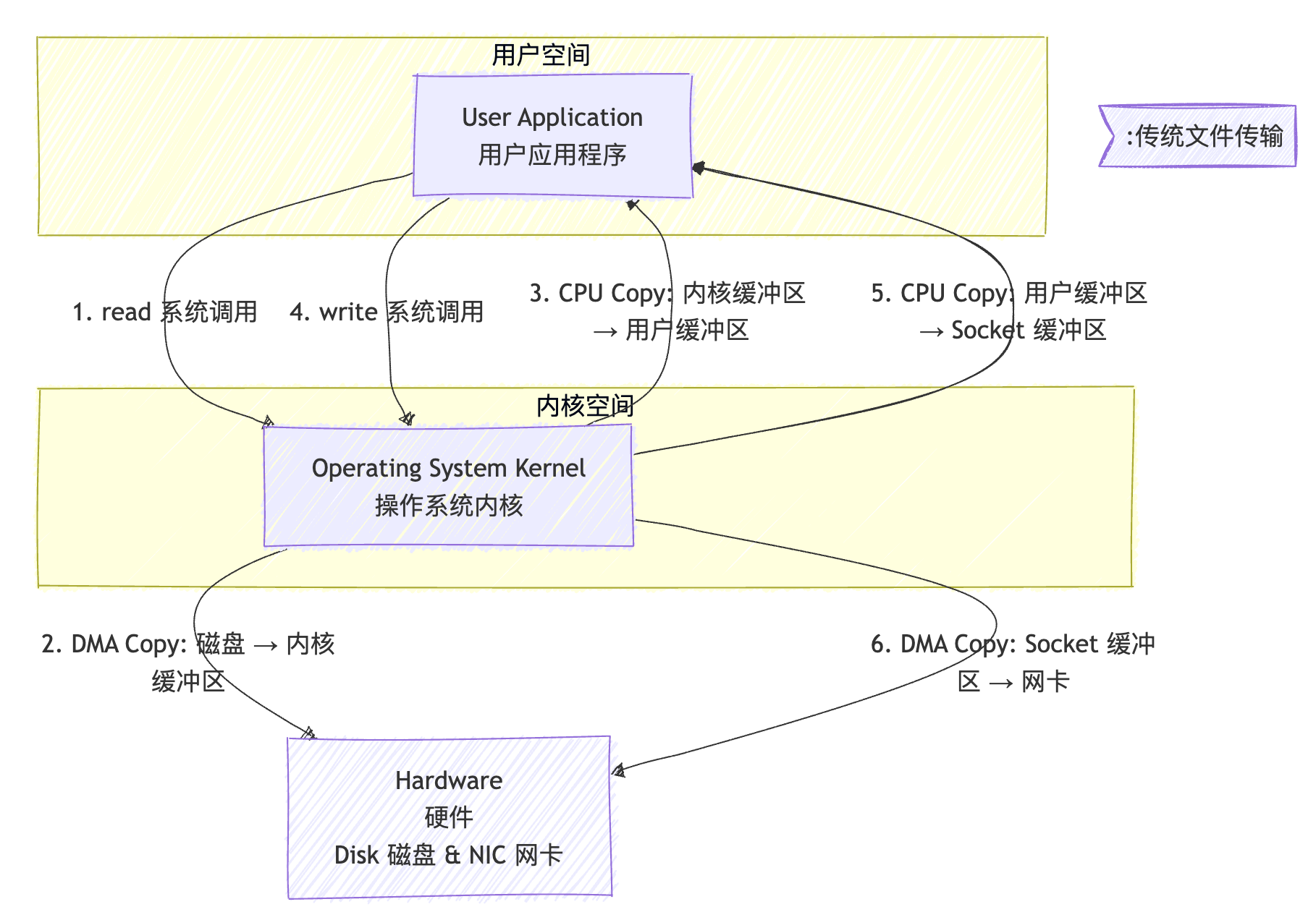 三、传统文件传输:被 "态切换" 拖垮的性能