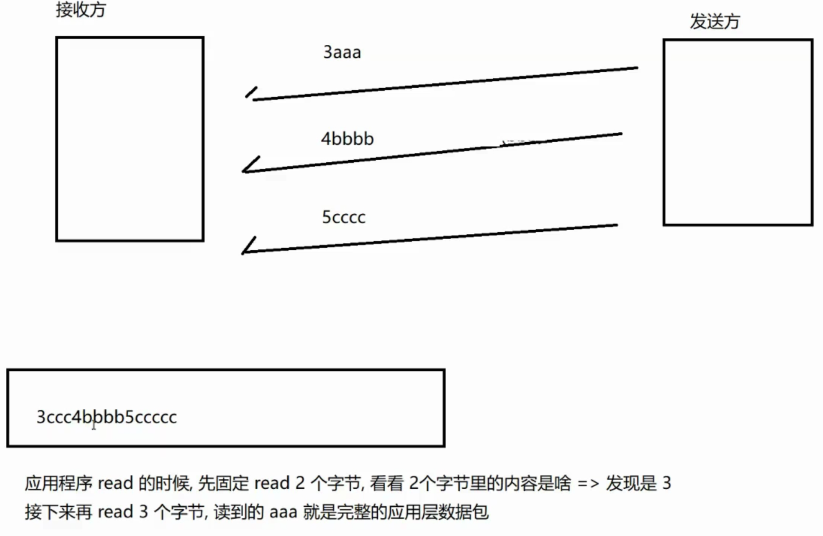 - 在应用侧数据包开头的地方,通过固定长度,约定整个应用层数据包的长度