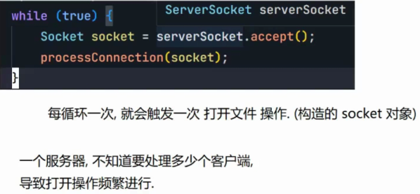 Socket建⽴与客⼾端的连接,否则阻塞等待