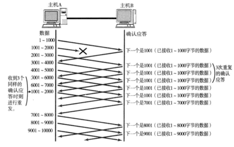 ack =>1001,1001 之前的数据都收到了,假设你1000的ack丢了,但是2000的数据收到了,TCP就会默认你2001之前的数据都收到了,下一个ack就直接从2001开始