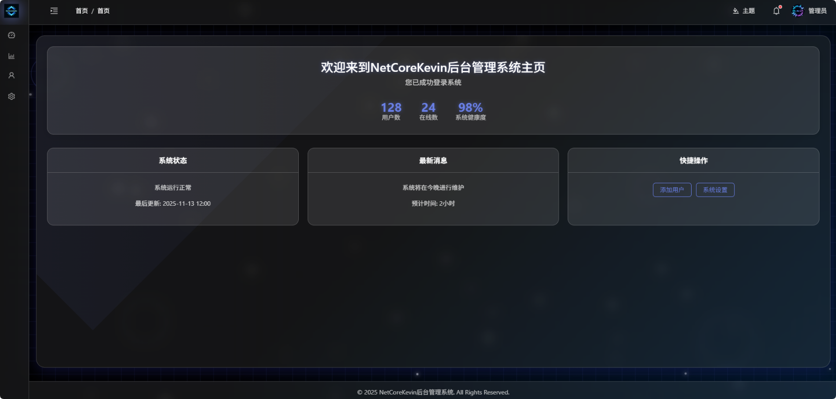 NetCoreKevin 是一套基于领域驱动设计(DDD)的 .NET 8 Web API 项目,采用前后端分离架构,前端用 Vue3 + Ant Design,后端按微服务思路设计。
