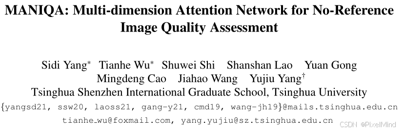 本文将围绕《MANIQA: Multi-dimension Attention Network for No-Reference Image Quality Assessment》展开完整解析。
