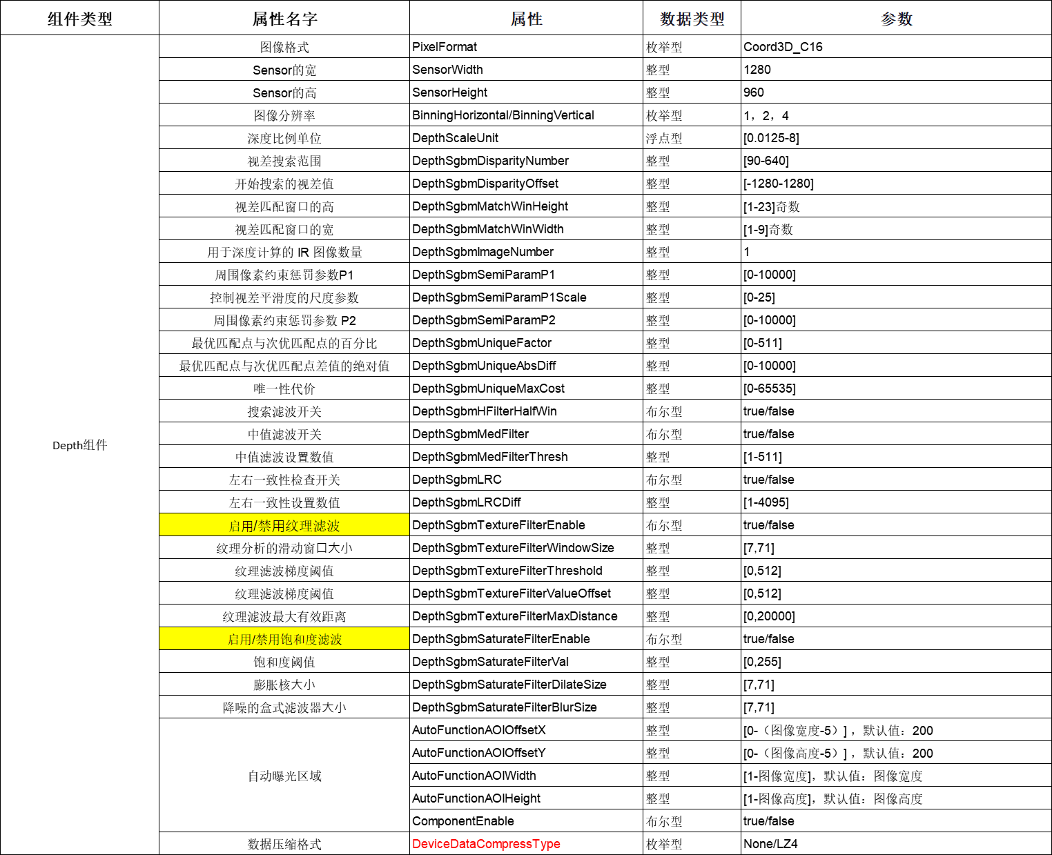 | DepthSgbmTextureFilterEnable | 纹理滤波使能开关 | true/false |