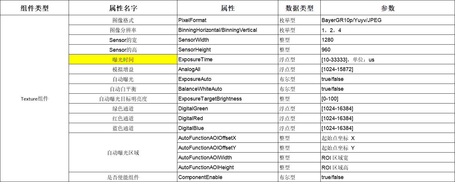 主要包含相机采集的工作模式、曝光参数测试曝光参数的测试在 SourceControl 模块中进行。