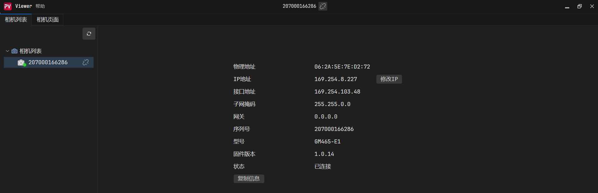 1.GM465-E1相机,需要搭配图漾新版本的看图软件使用,可联系图漾技术获取。