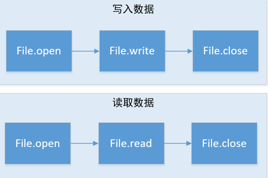 读数据的时候,打开文件,将数据从内存中取出来,存放在缓冲区,最后关闭文件。当然每次读取和写入的字节大小可以由程序员自己选择,作用的次数也就不一样了。