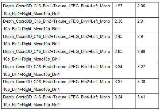 Depth/Texture:Bin1- 1280x960,Bin2- 640x480,Bin4-320x240。