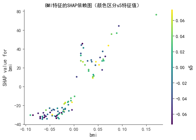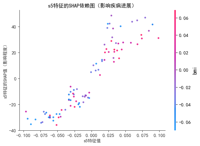 print("--- SHAP依赖图(bmi + s5交互) ---")