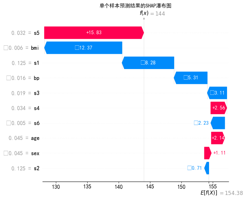 print("--- SHAP瀑布图(测试集第0个样本) ---")