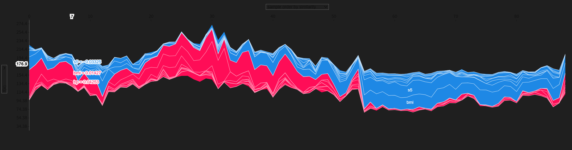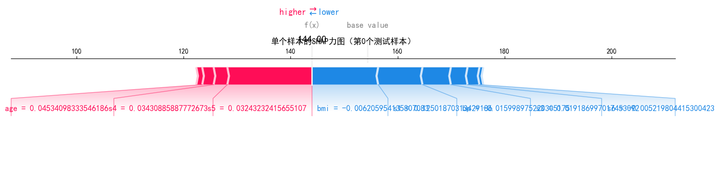 bmi和s5这两个特征决定;sex、s2等特征的影响非常小,模型几乎不会 "依赖" 这些特征做决策。总结:该模型的预测逻辑高度依赖