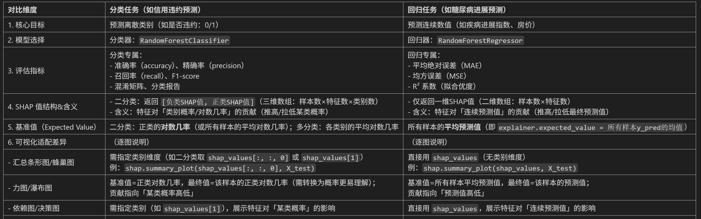 - 模型通常为每个类别输出一个分数或概率。○ SHAP 需要解释模型是如何得到每个类别的分数的。