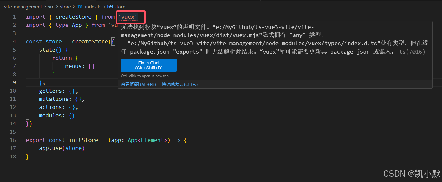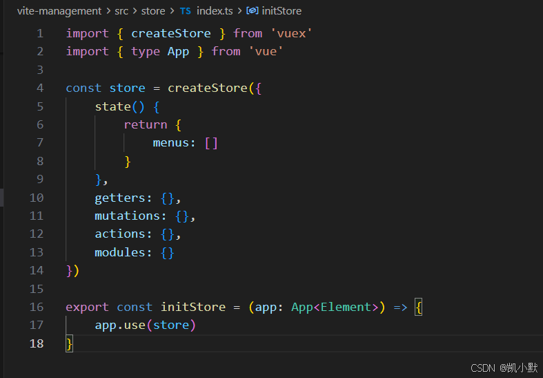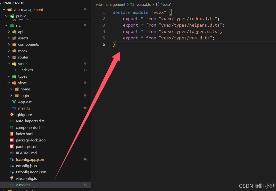 在根目录新建一个 vuex.d.ts 文件