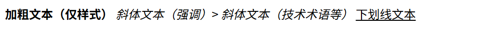 html<!-- 语义化文本标签 --> <p> <b>加粗文本(仅样式)</b> <em>斜体文本(强调)</em>> <i>斜体文本(技术术语等)</i> <u>下划线文本</u> </p>