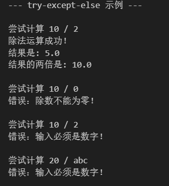 print(f"计算结果是: {result}") # 如果上面出错,这行不会执行
