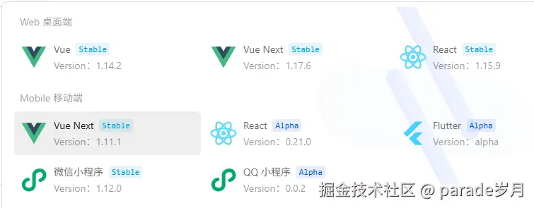 - 全平台支持:提供 Vue 2/3、React、小程序等多个版本