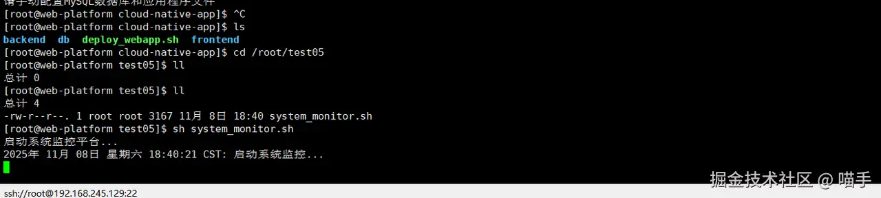 这个监控脚本构建了一个完整的监控数据流水线。每5秒采集一次系统关键指标,包括CPU、内存、磁盘、负载和网络连接数。check_alerts函数实现了智能阈值检测,当资源使用率超过预设阈值时自动触发告警。send_alert函数为后续集成多种告警渠道预留了接口。这种设计体现了"监控即代码"的现代运维理念。