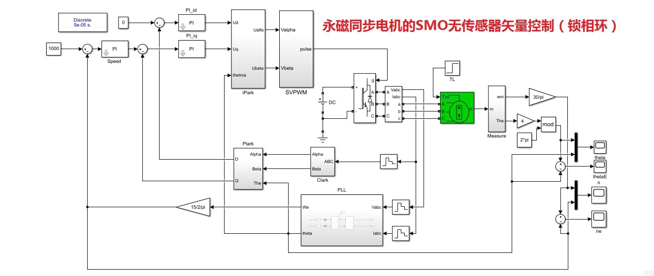 永磁同步电机的控制算法仿真模型: 1. 永磁同步电机的MRAS无传感器矢量控制: 2. 永磁同步电机的SMO无传感器矢量控制(反正切+锁相环); 3. 永磁同步电机DTC直接转矩控制; 4. 永磁同步电机的有传感器矢量控制; 5. 永磁同步电机的位置控制 永磁同步电机的控制算法仿真模型: 基于ADRC自抗扰算法的PMSM双闭环转速控制 基于RLS的永磁同步电机的参数辨识 基于卡尔曼滤波的永磁同步电机无传感器矢量控制_2014a 永磁同步电机DTC直接转矩控制仿真模型 永磁同步电机MTPA控制算法仿真模型 永磁同步电机的MRAS无传感器矢量控制 永磁同步电机的SMO无传感器矢量控制 永磁同步电机的磁场定向控制(矢量控制) 永磁同步电机的磁链观测 永磁同步电机的电流滞环控制 永磁同步电机的反歩控制 永磁同步电机的高频注入 永磁同步电机的模型预测控制 永磁同步电机矢量控制+MTPV+MTPA算法(弱磁控制)仿真simulink模型 永磁同步电机位置控制 PMSM矢量控制模型