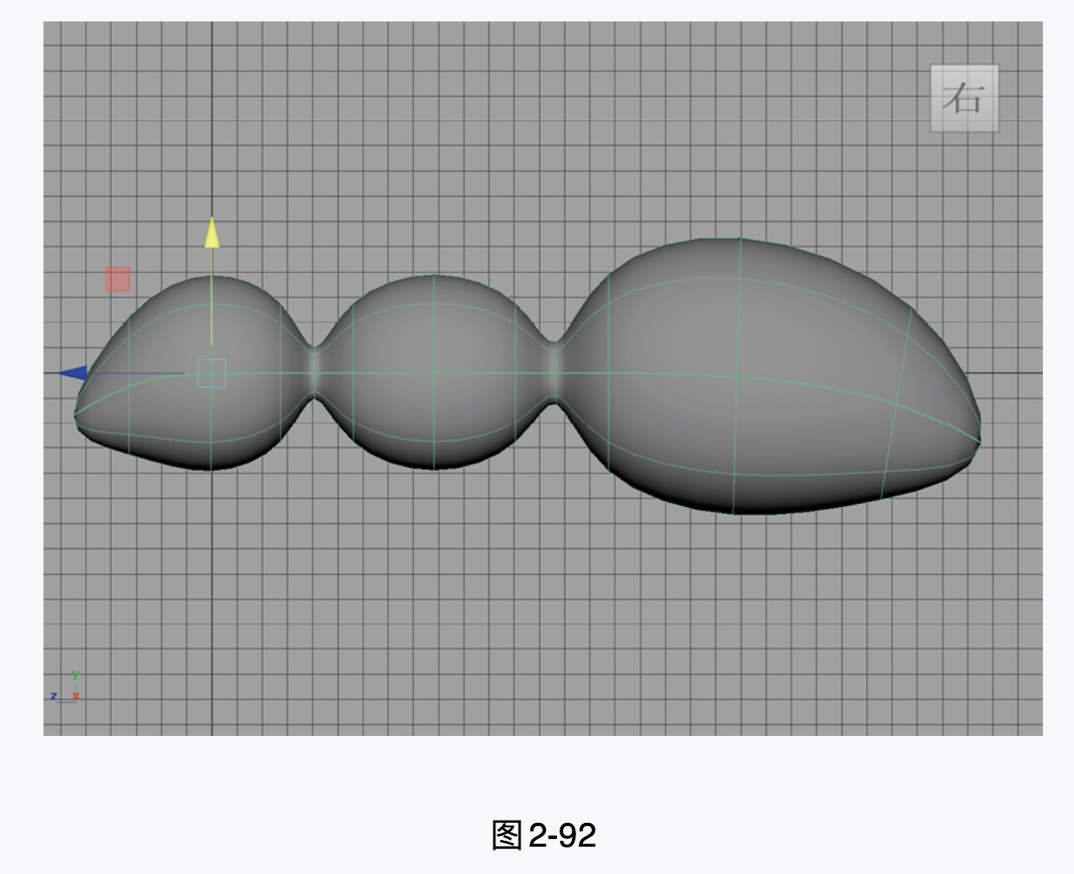 (8)先选择前两个球体模型,单击"曲面"工具架上的"附加曲面"图标,得到图2-91所示的模型。