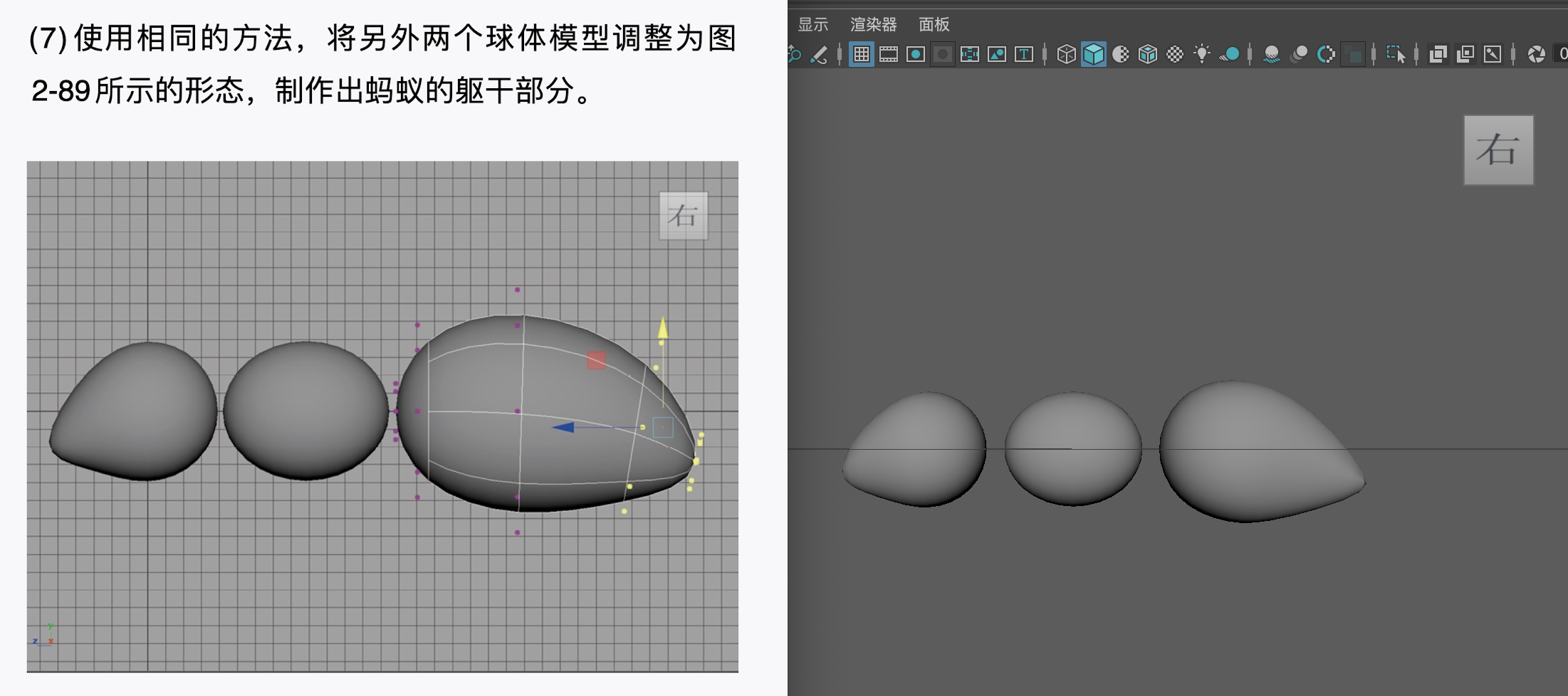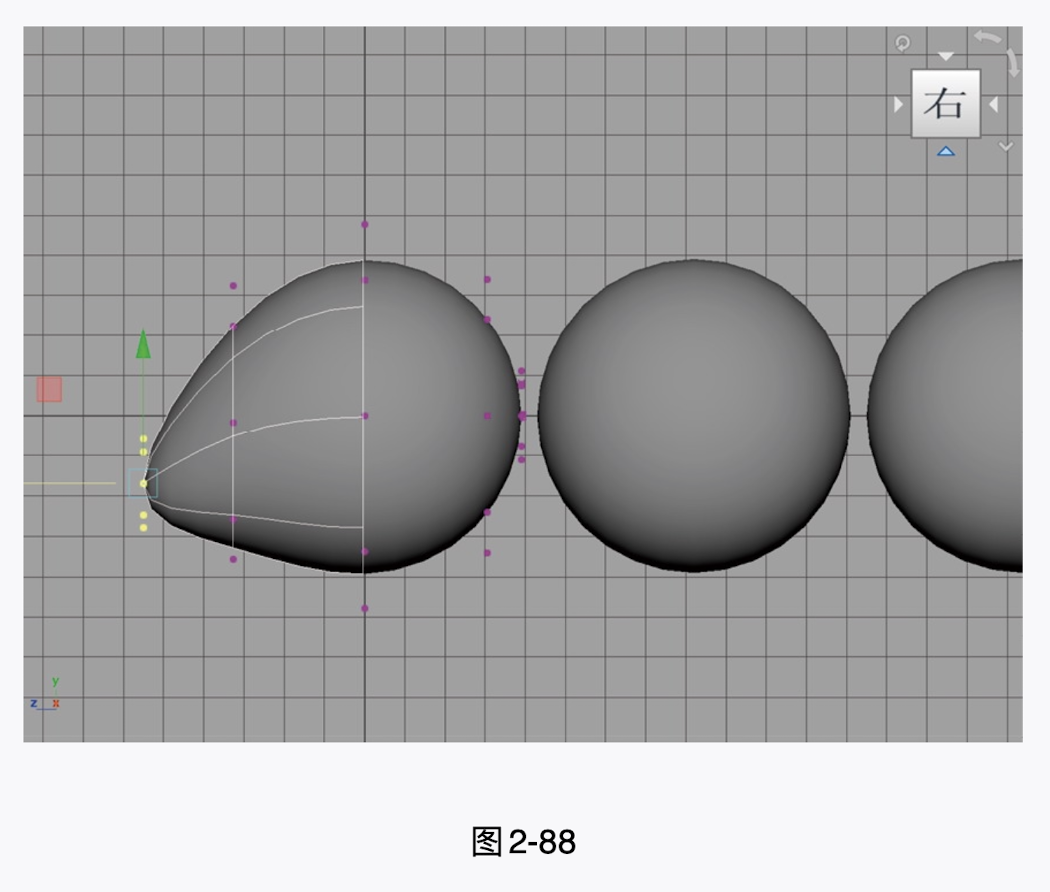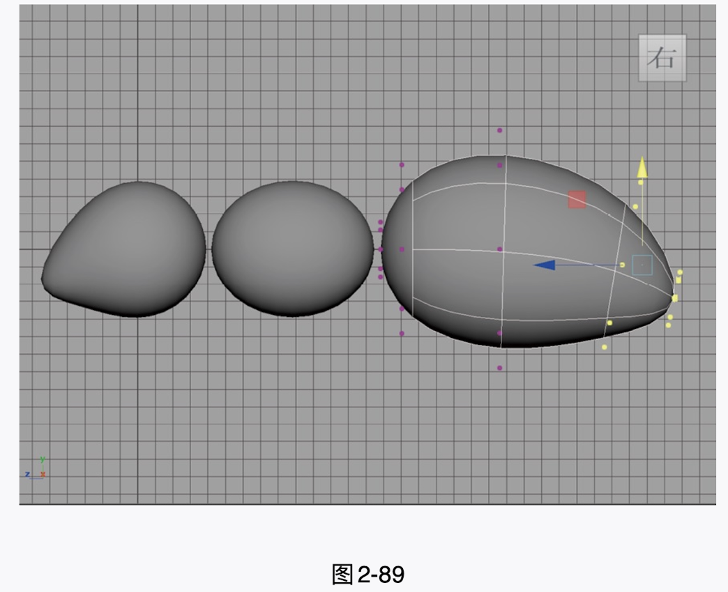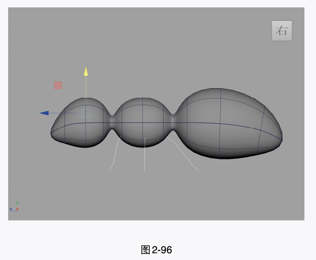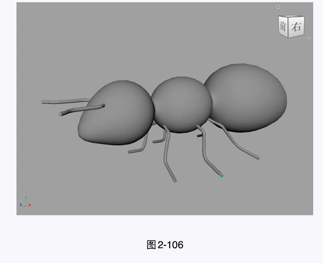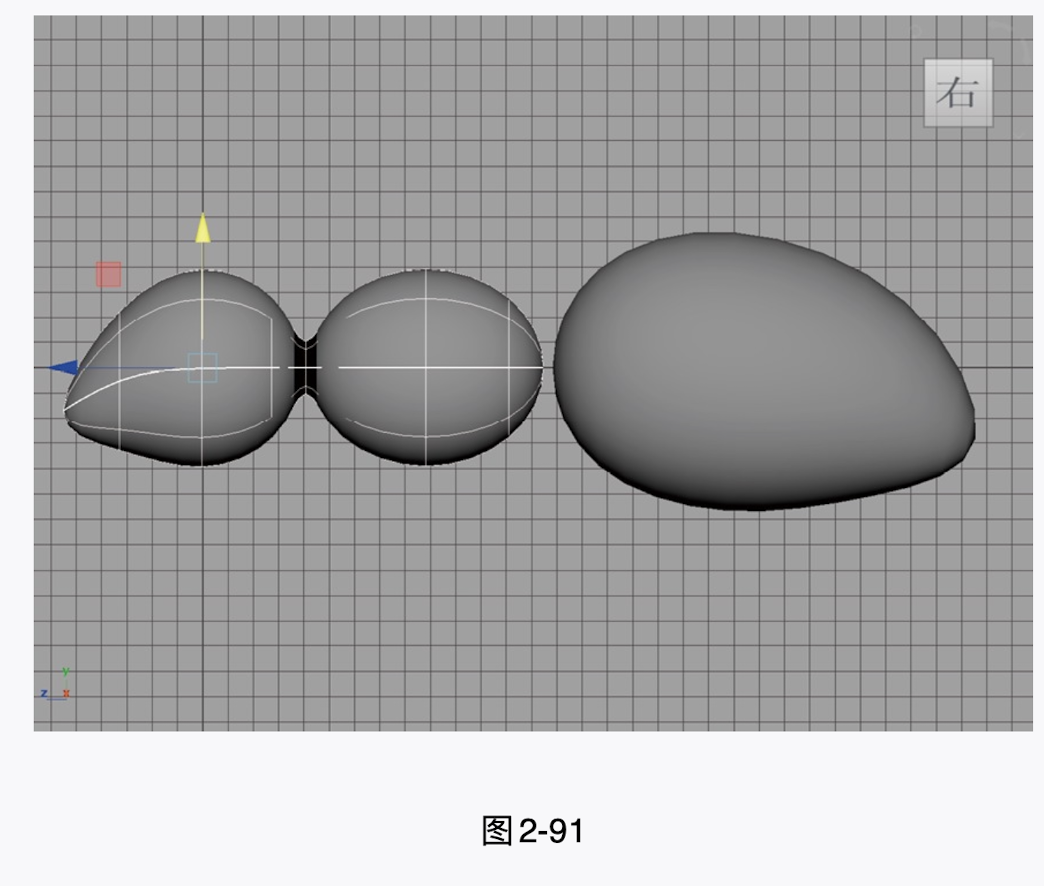 (7)使用相同的方法,将另外两个球体模型调整为图2-89所示的形态,制作出蚂蚁的躯干部分。