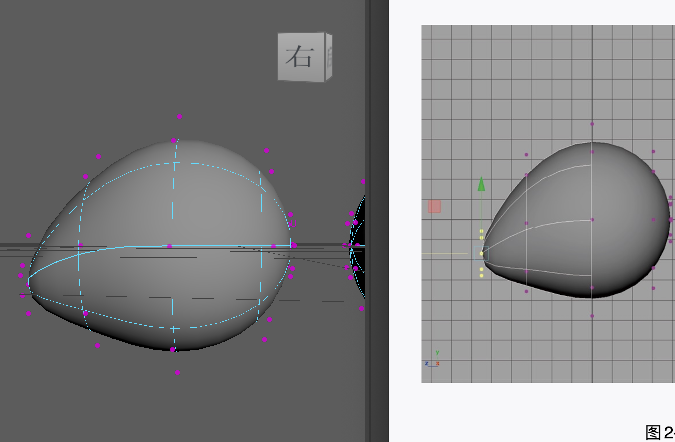 (12)在"右视图"中,调整曲线的形态和位置。
